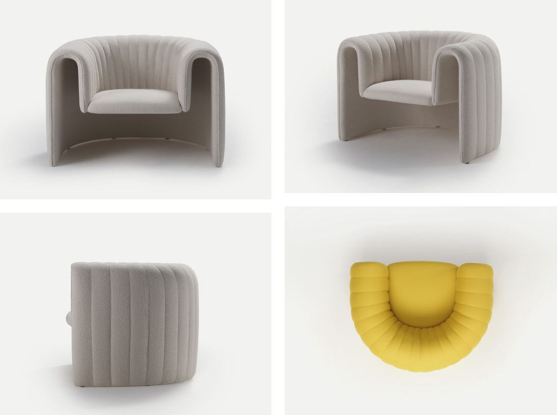 시각적으로 가볍고 단순해 보이는 디자인은 상당한 개발, 실험 및 엔지니어링 작업의 결과입니다. 이 디자인의 핵심은 새로운 구조적 형태를 탐구하려는 산업적 호기심, 장인의 손길이 느껴지는 따뜻함, 디자인의 우아함, 그리고 흠잡을 데 없는 디테일이 완벽하게 조화를 이룬 데 있습니다. 안락의자와 소파를 감싸는 섬세하고 우아한 퀼팅은 다양한 원단으로 마감할 수 있는 상징적인 디자인에 질감을 더합니다.