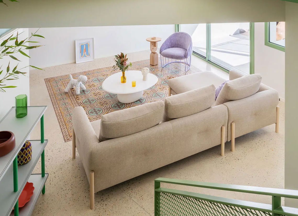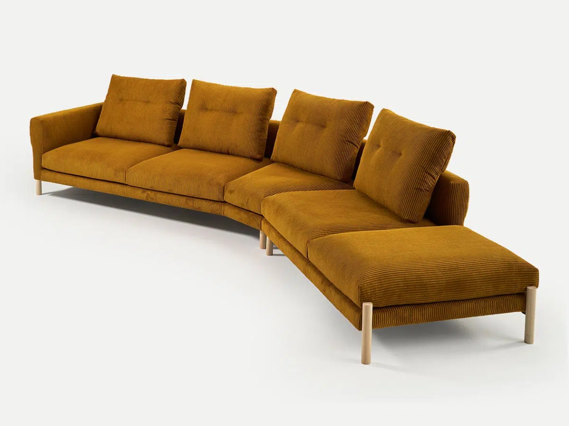 모믹은 포괄적인 모듈형 시스템으로 구성되어 있습니다. 두 가지 좌석 크기를 시작으로 2인용 및 3인용 소파, 팔걸이가 있는 모듈과 없는 모듈, 다양한 형태의 셰즈롱, 푸프, 사이드피스, 그리고 45도 각도의 섹셔널 소파까지 다양한 구성을 만들어낼 수 있습니다. 좁은 공간부터 넓은 개방형 공간까지 어떤 환경에도 잘 어울리는 디자인입니다.