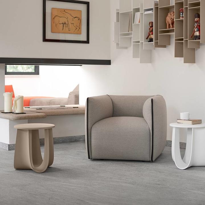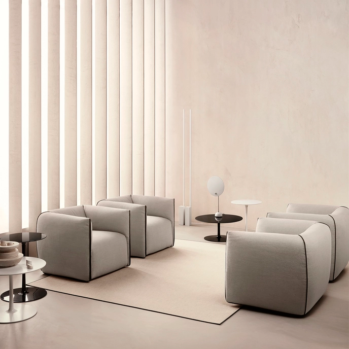 미아 암체어는 마치 쿠션을 접어 아늑하고 편안한 공간을 만드는 듯한 단순한 행위에서 영감을 받은, 포근한 형태가 특징입니다. 과감한 실루엣과 조화로운 색상 또는 대비되는 색상의 패브릭 조합은 미아 암체어에 독특한 개성을 부여하여 주거 공간은 물론 상업 공간에도 완벽하게 어울립니다. 고정형과 360도 회전형(복원 메커니즘 포함) 두 가지 버전으로 제공되는 미아는 편안함과 기능성을 겸비하면서도 부드럽고 풍성한 디자인을 자랑합니다.